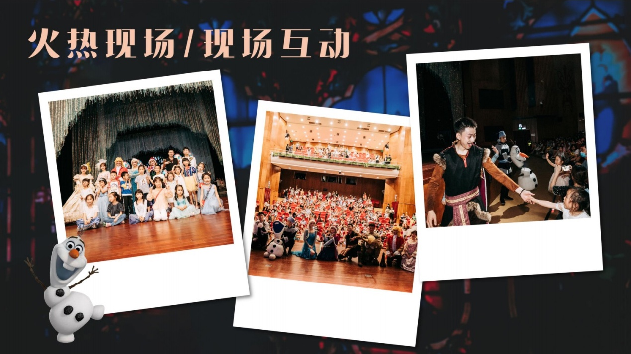 漫天纷飞的冰雪世界,气势恢宏的皇宫宝殿……不要怀疑,这就是《冰雪女王之星梦奇缘》大剧场版本最身临其境的逼真布景。大型剧场版本特采用百老汇专用舞台模式,全景展现王宫、森林、雪山等唯美场景。聪明的驯鹿、可爱的雪宝,美丽的艾莎……这些角色在身临其境的布局下显得更加栩栩如生,一定会给孩子们留下最深刻的印象!