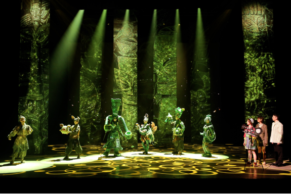 本剧运用儿童视角消解历史厚重感:陶猪化身“宇宙快乐使者”、青铜人头像成“奥特快兄弟”,将学术谜题转化为充满童真的奇幻故事。舞台互动设计(如观众参与麻将游戏、扫码弹幕答题)增强沉浸感,让严肃的考古主题变得生动可及。
