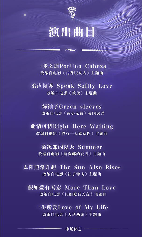 5、一般情况下,演出中途需要离场的观众,请在乐章结束或幕间再离开座位。中场休息或需要暂时离开时,请记得携带票券,便于顺利返回,继续欣赏演出。