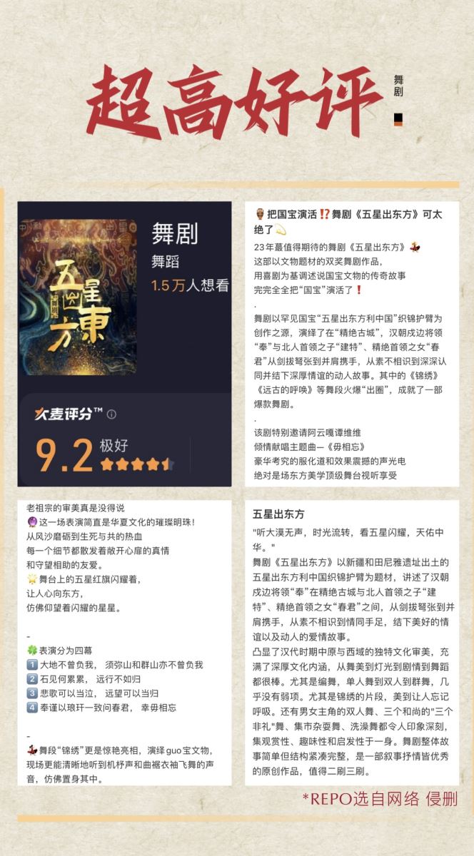 4、演出时长:约128分钟,包含中场休息15分钟(以现场为准);