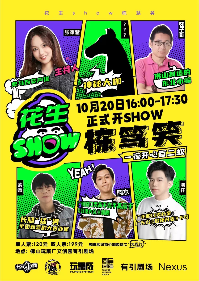 作为《全城喜•剧计划》当中的中坚力量,“花生喜剧团”经过一年时间的精心准备,由知名广播主持人、栋笃笑艺人萧桦坚领衔,联同佛山市新闻传媒中心“花生喜剧团”的一众栋笃笑新星,与本地文化集聚点“玩聚厂”合力打造喜剧舞台演出《花生show栋笃笑》剧目,带来爆笑正能量,传承粤语文化!
