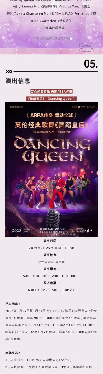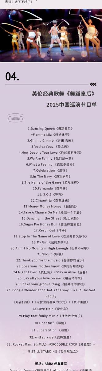 演出名称:英伦经典歌舞 再现ABBA传奇——《舞蹈皇后》(Dancing Queen)