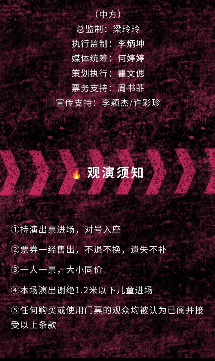 *请观众提前半小时入场,1.2米以下儿童谢绝进场。对号入座,严禁跨层。