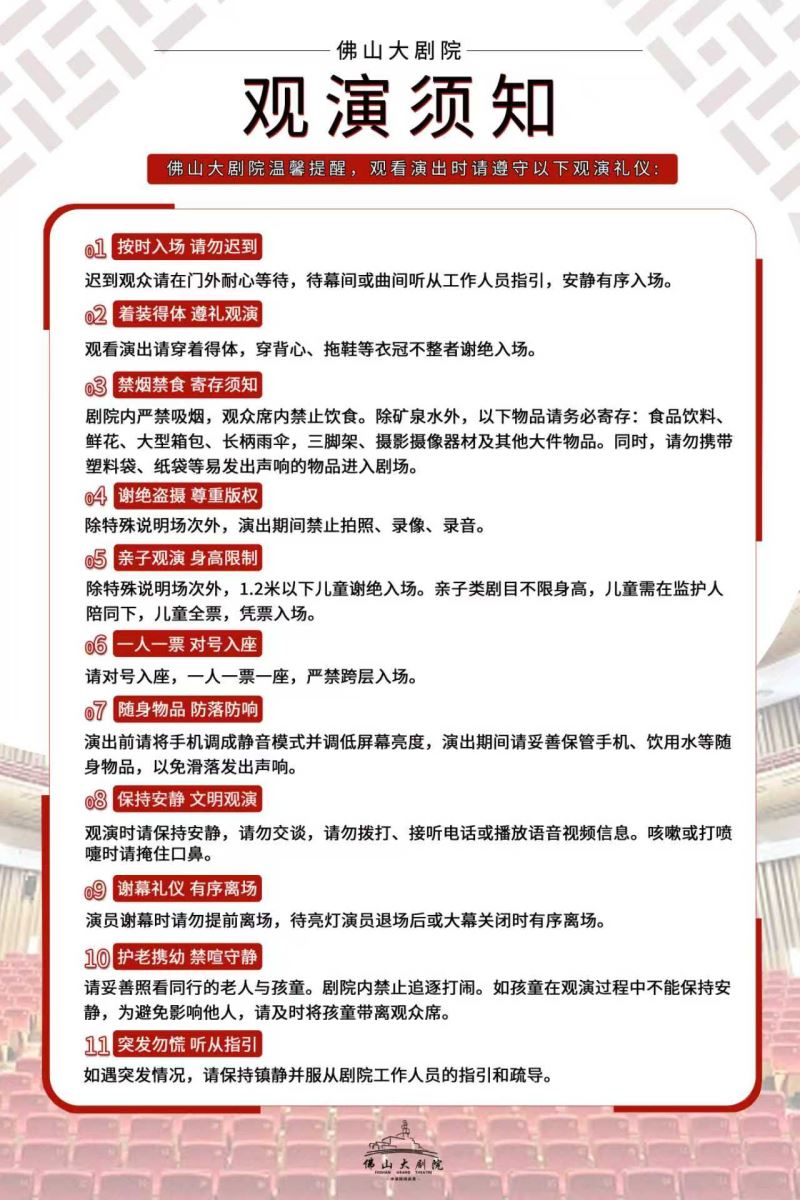 2.为保障观众的消费权益,购买门票的观众仅能凭票进入对应楼层,对号入座,严禁跨层入场。迟到的观众可能错过部分演出,请服从工作人员的安排;