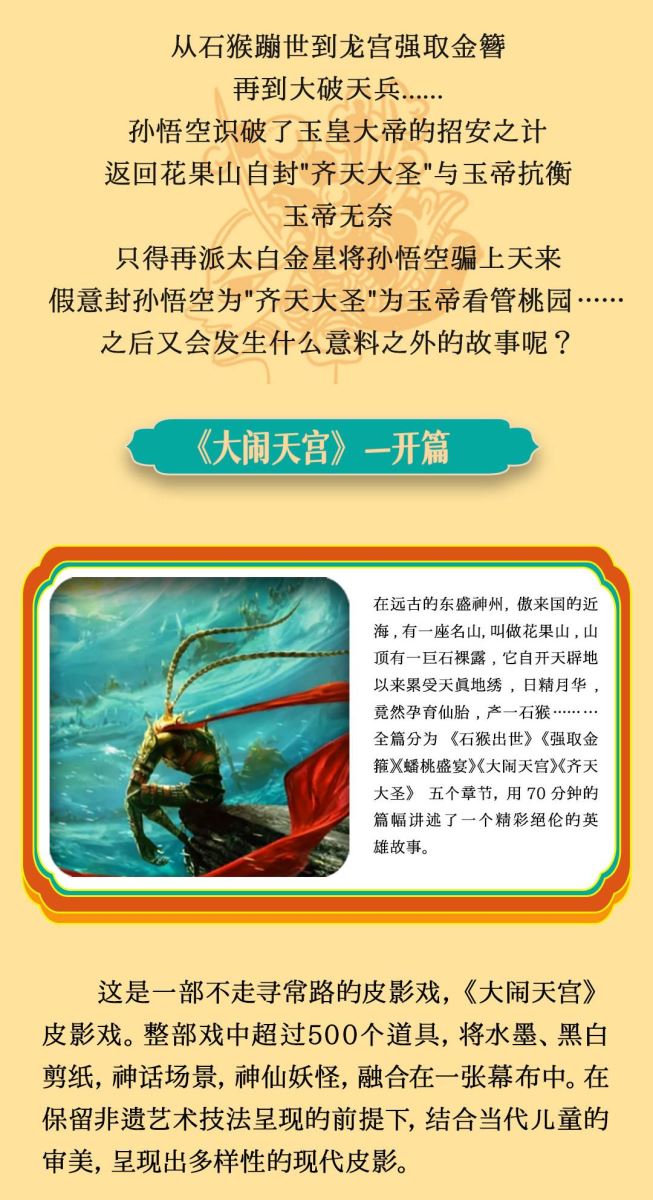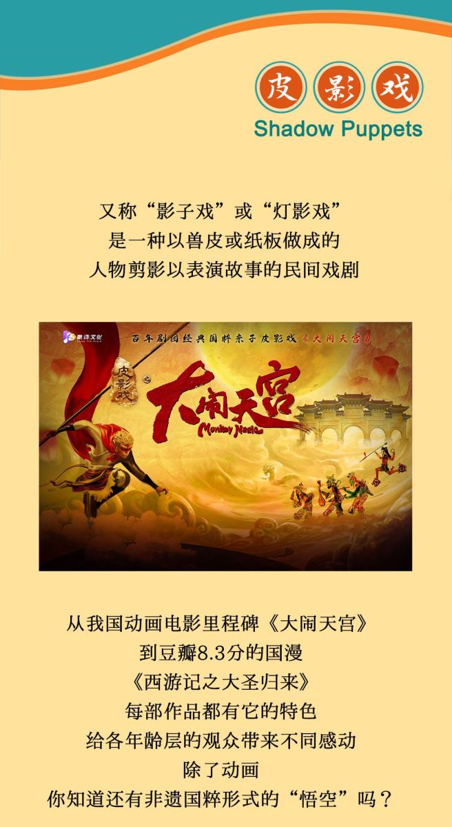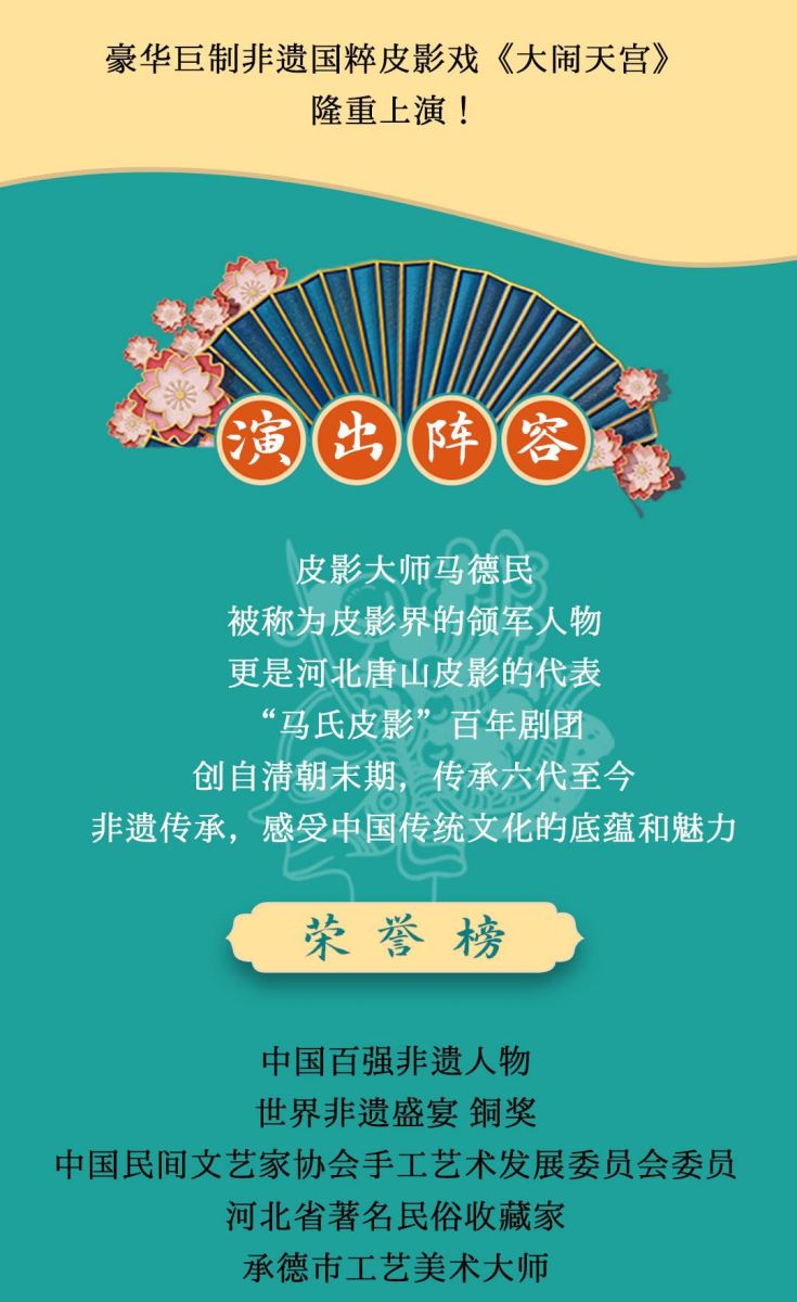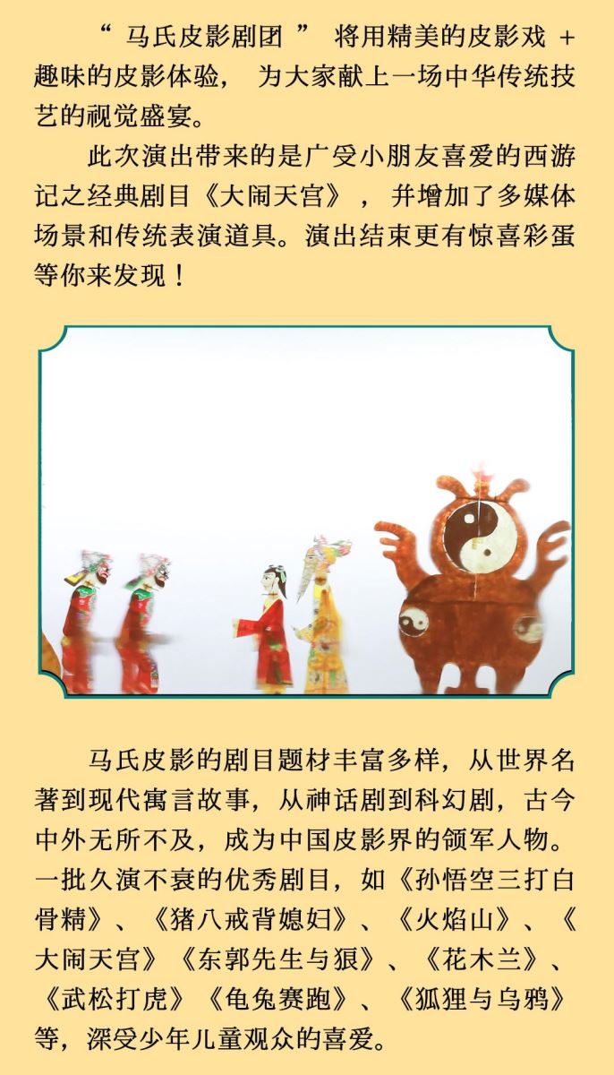 演出名称:“百年剧团”经典国粹亲子皮影戏《大闹天宫》