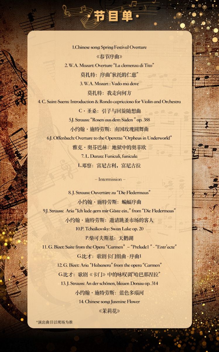 4、一般情况下,演出中途需要离场的观众,请在乐章结束或幕间再离开座位。中场休息或需要暂时离开时,请记得携带票券,便于顺利返回,继续欣赏演出。
