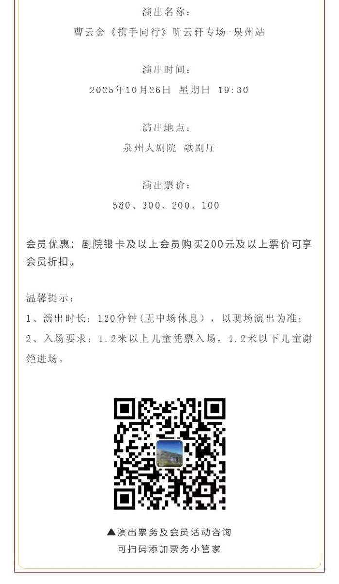 5、观演过程中,除特殊声明以外,谢绝一切舞台画面的录音录像,感谢您的配合。