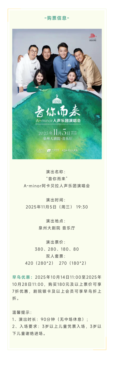 5、观演过程中,除特殊声明以外,谢绝一切舞台画面的录音录像,感谢您的配合。