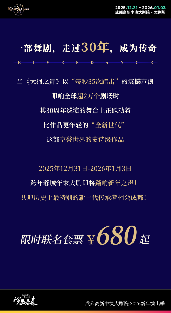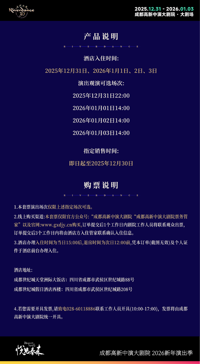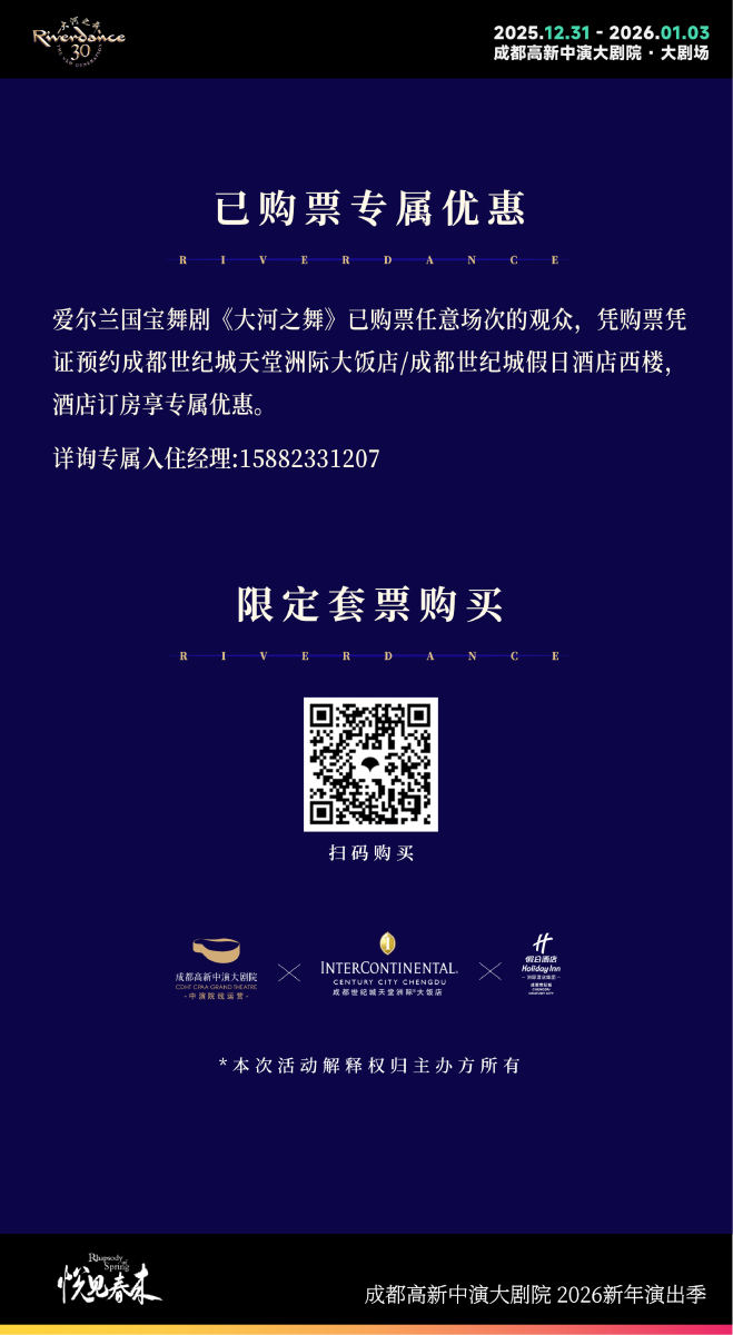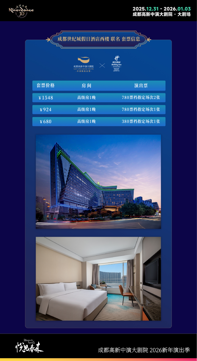 大河之舞联名套票 | 成都世纪城天堂洲际酒店群 × 成都高新中演大剧院