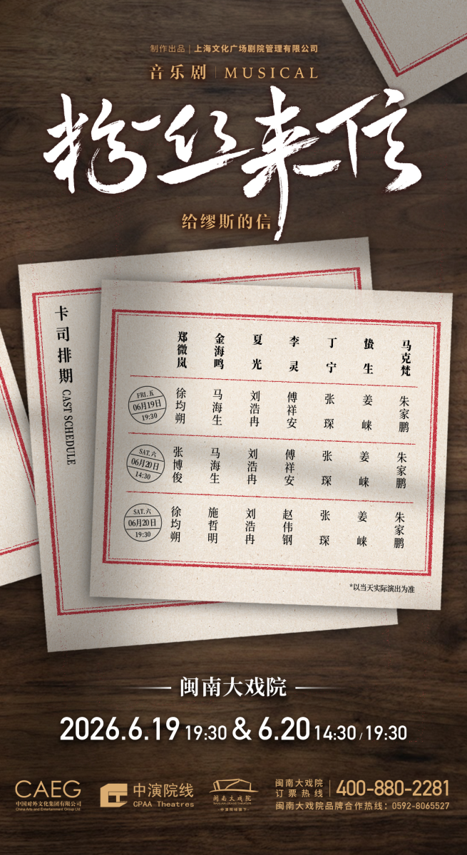 2、音乐剧联票:2月13日至4月25日购买一张《宝玉》380元和一张《粉丝来信》380元可享受套票价650元,售完即止;