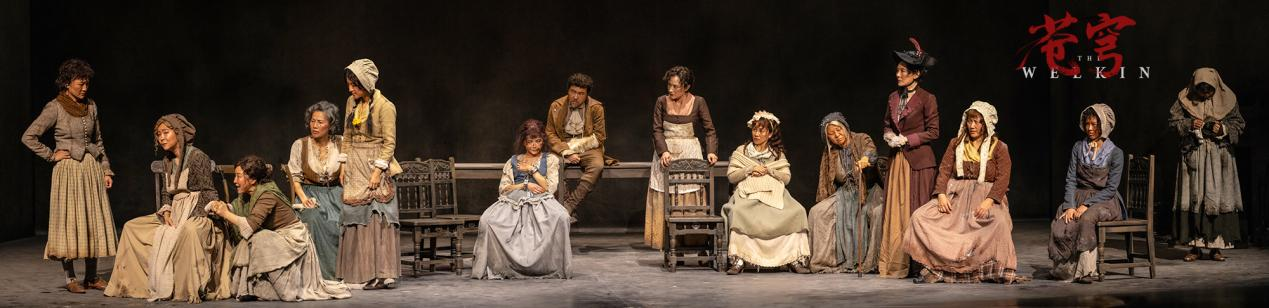 《苍穹》是英国千禧世代著名女编剧、英国新生代剧作家代表之一露西·柯克伍德代表作。柯克伍德以在18 世纪英语语境下“天空”或“天堂”的意像作为剧名。柯克伍德创作《苍穹》,灵感来源于一次与一位历史学家聊到了“妇女陪审团”的概念。在18 世纪的英国,人们害怕杀死未出生的孩子,女重刑犯如若怀孕,便会免于死刑,以流放代替。剧中展现了受审者萨莉加上12位不同年龄的陪审员的女性众生相,描写了18世纪中期英国乡村女性艰辛的生存境遇,以及属于女性特有的生理与心理双重困境。
