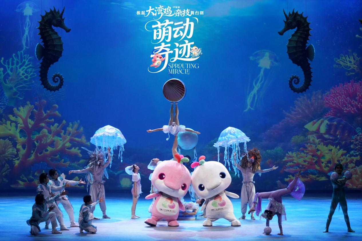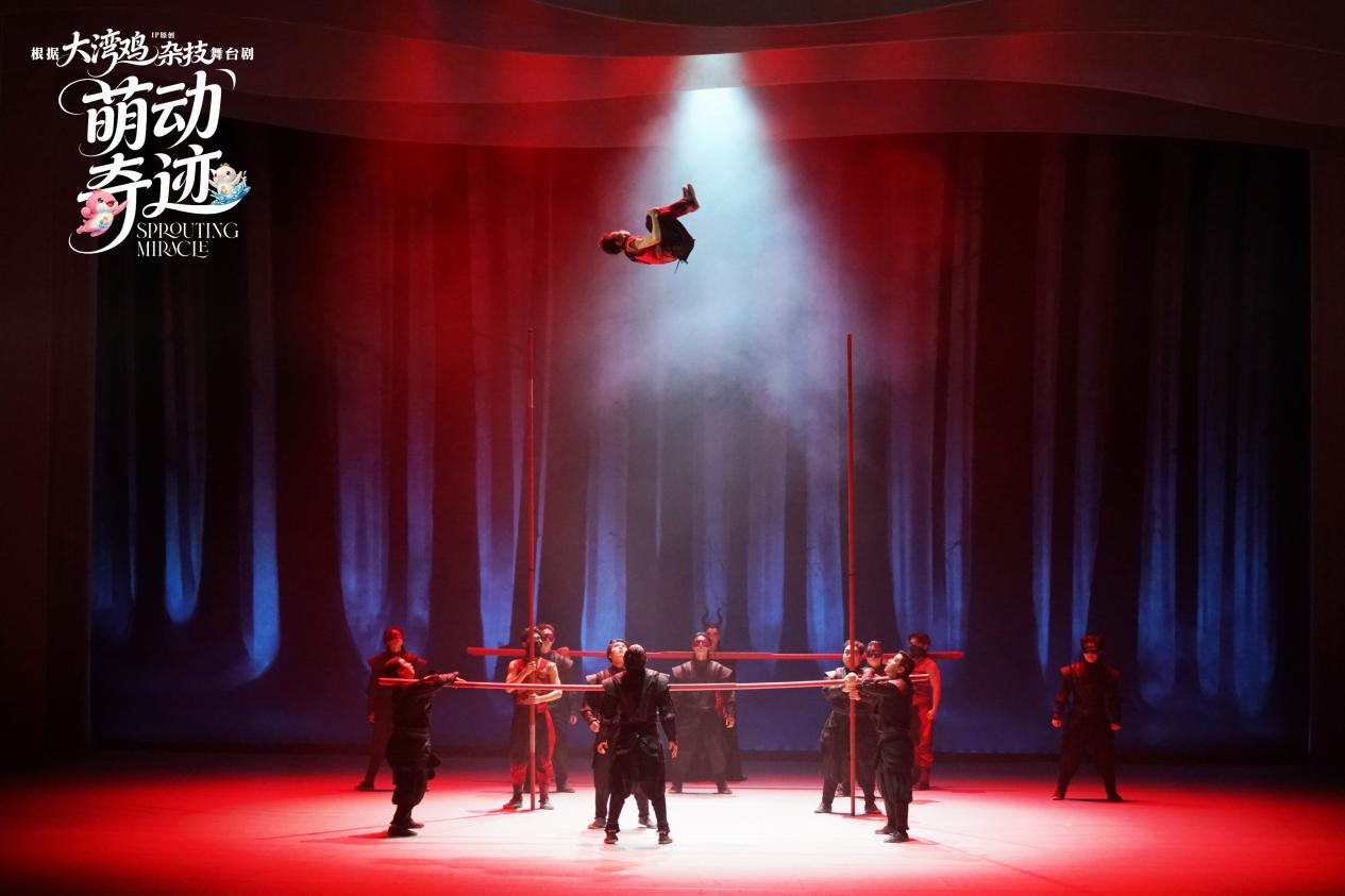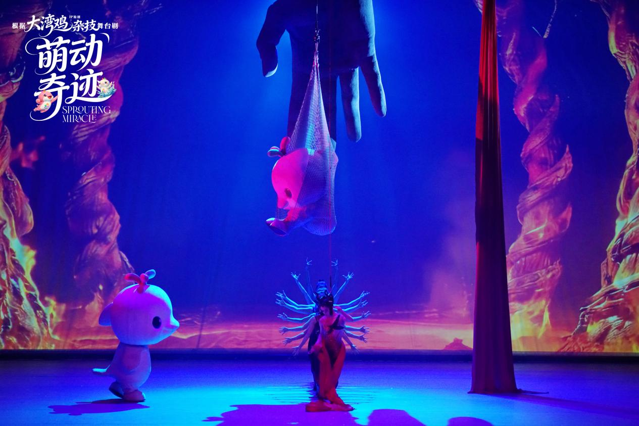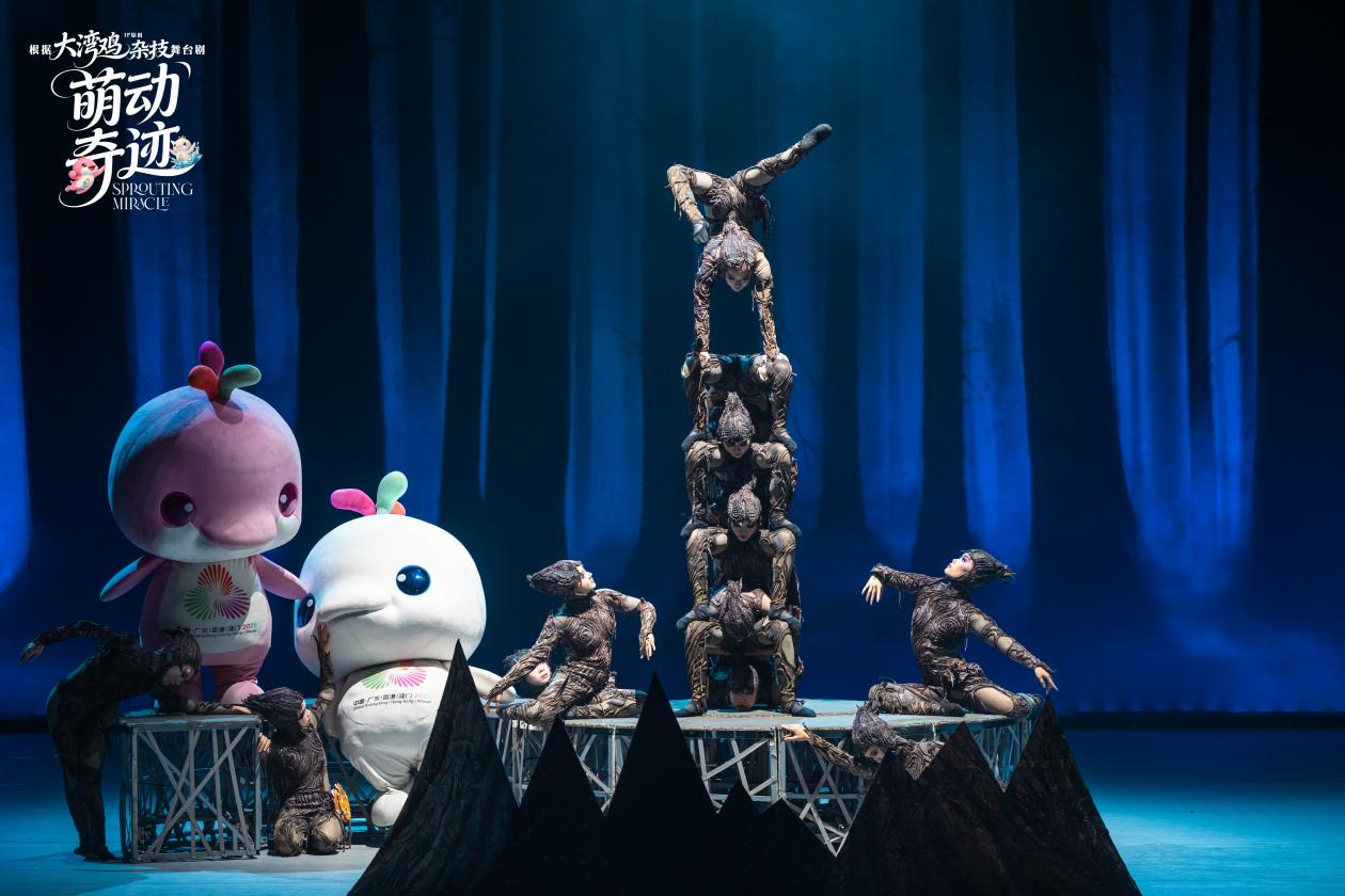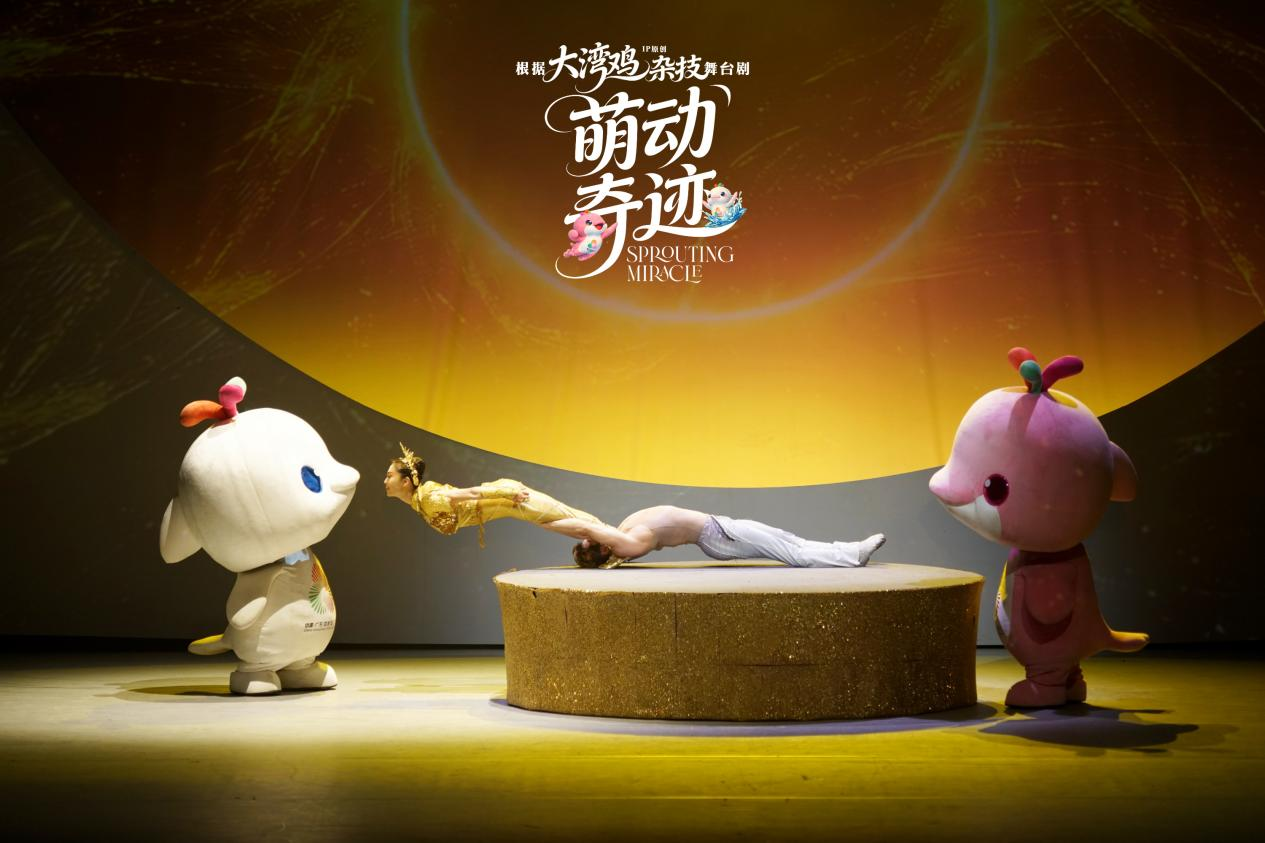 杂技童话剧《萌动奇迹》是一部融合原创童话与高难度杂技的舞台治愈之作。该剧以大湾区超萌IP“大湾鸡”(喜洋洋与乐融融)为主角,讲述在一个童话被封印、色彩尽失的世界里,天真勇敢的喜洋洋和乐融融携光而生,以纯净童心与无畏勇气突破黑暗、重启童话的温暖故事。