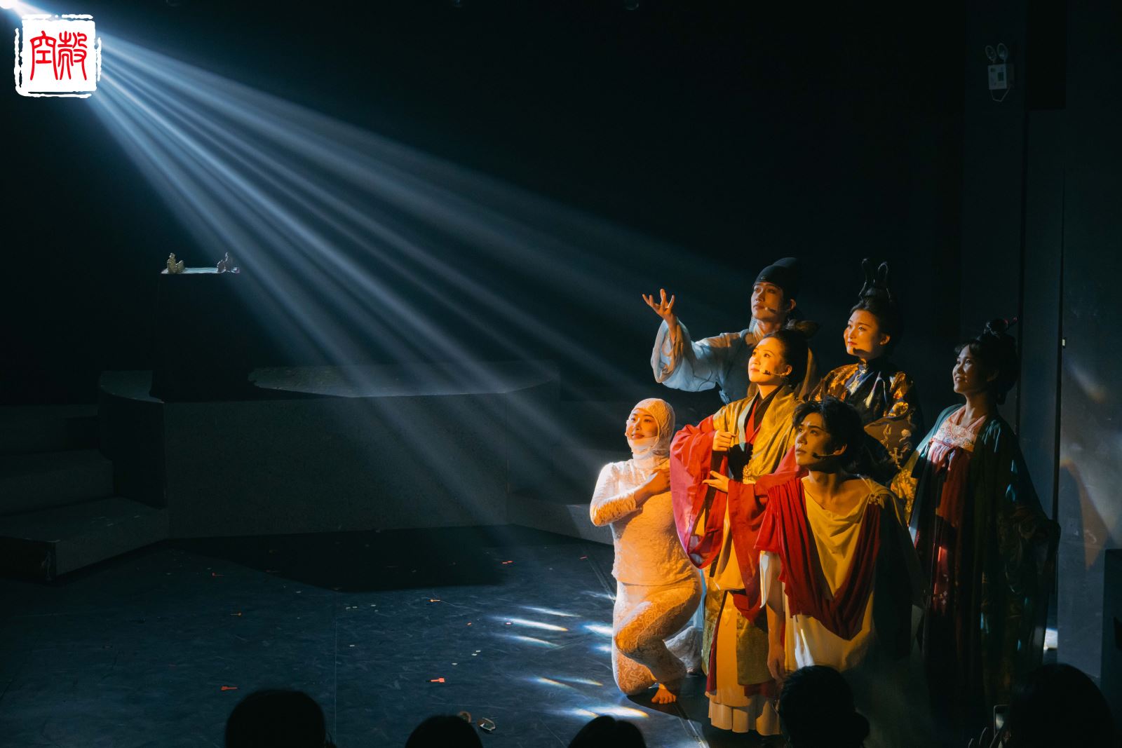 故事发生地的大旋转楼梯被搬上舞台,文物们一动起来瞬间入戏,绝胜沉浸式剧场。灯光切换、场景变换,跟随艺轩的脚步,穿过走廊、经过一个又一个展厅,前往故事的终局。