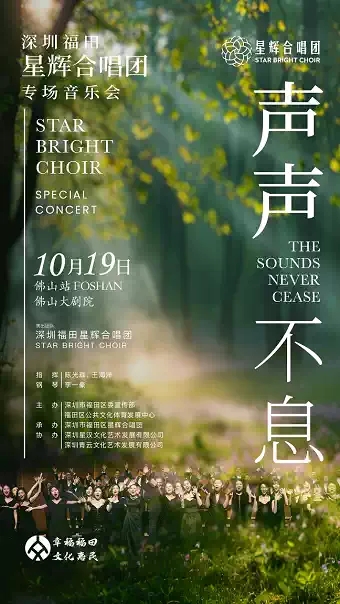 演出名称:“声声不息”深圳福田星辉合唱团2025大湾区巡演佛山专场音乐会演出时间:2025年10月19日(周日)19:30