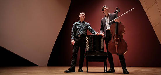 奇亚斯玛二重奏由大提琴家皮埃尔·冯特奈尔与手风琴家弗林·沃尔特组成,他们将各自乐器的独特音色巧妙融合,大胆探索多种音乐风格的边界。这两位充满活力的年轻演奏家凭借其非凡的创造力、即兴演奏的灵动性以及对现代音乐的深刻理解,向观众呈现了他们心目中21世纪音乐家应有的独特风采。在这场融合“古典”与“流行”的音乐会上,他们为观众带来了一个全新的二重奏音乐世界,令人耳目一新。