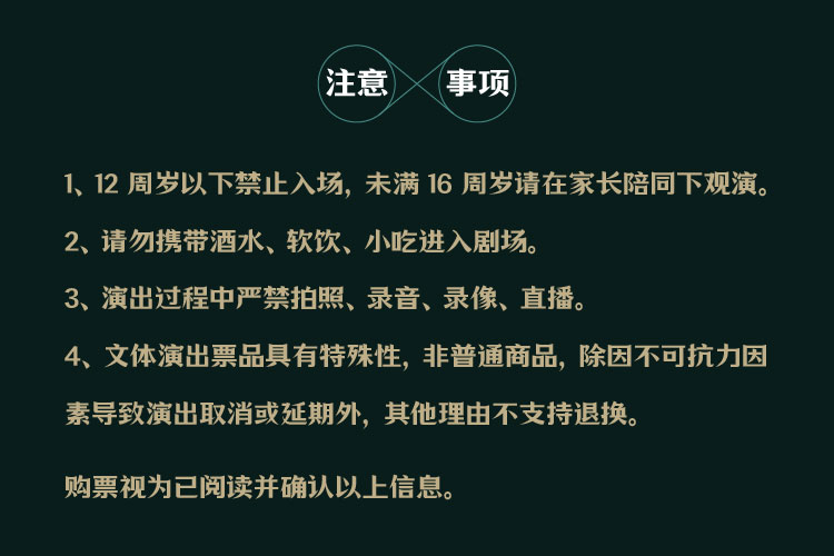 *每人一票,12周岁以下禁止入场,未满16周岁请在家长陪同下观演。